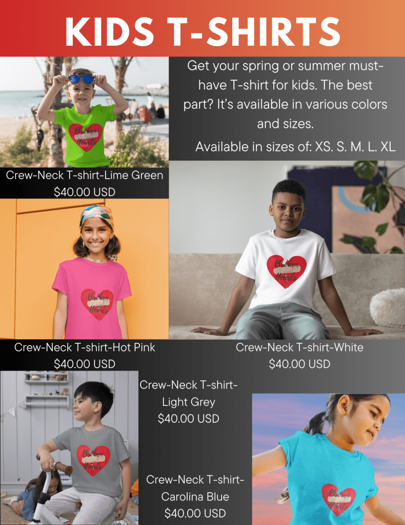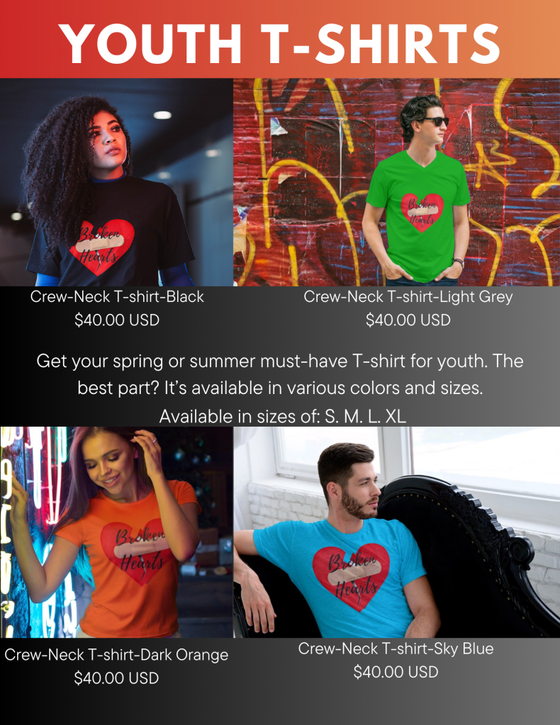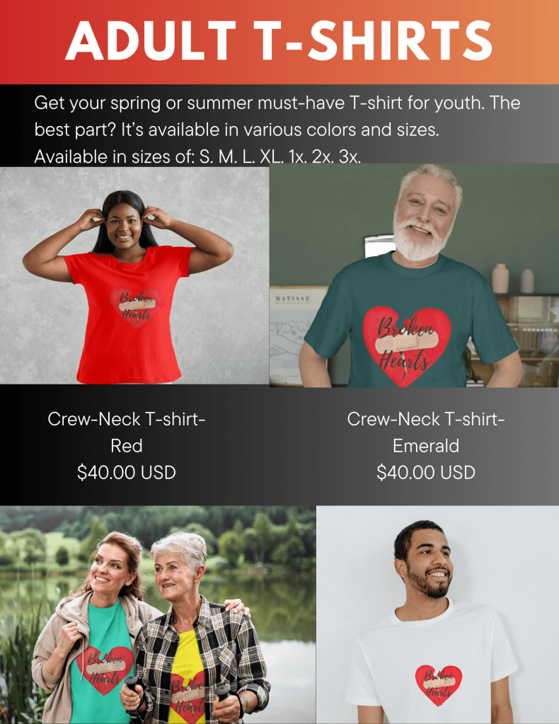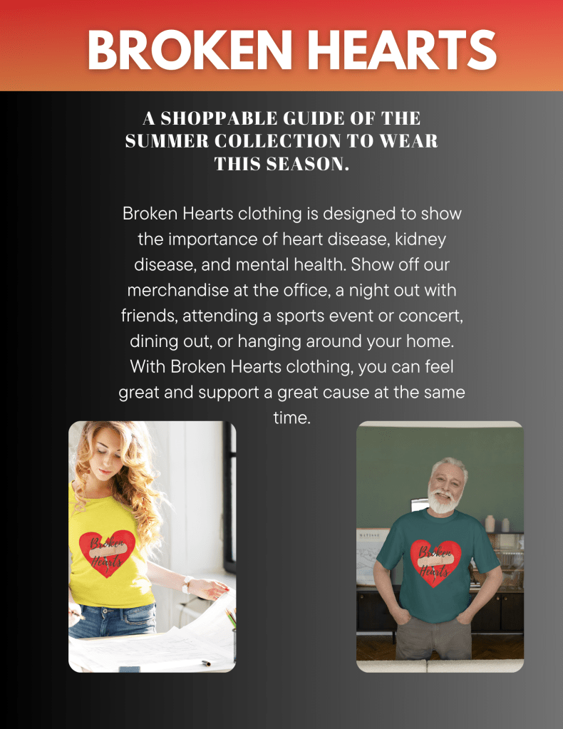 Broken Hearts is a clothing brand that brings awareness to those who are battling heart disease, mental health, and kidney disease. Broken Hearts was created in memory and in honor of the late, Yoshika Walker who had congestive heart failure and kidney disease.